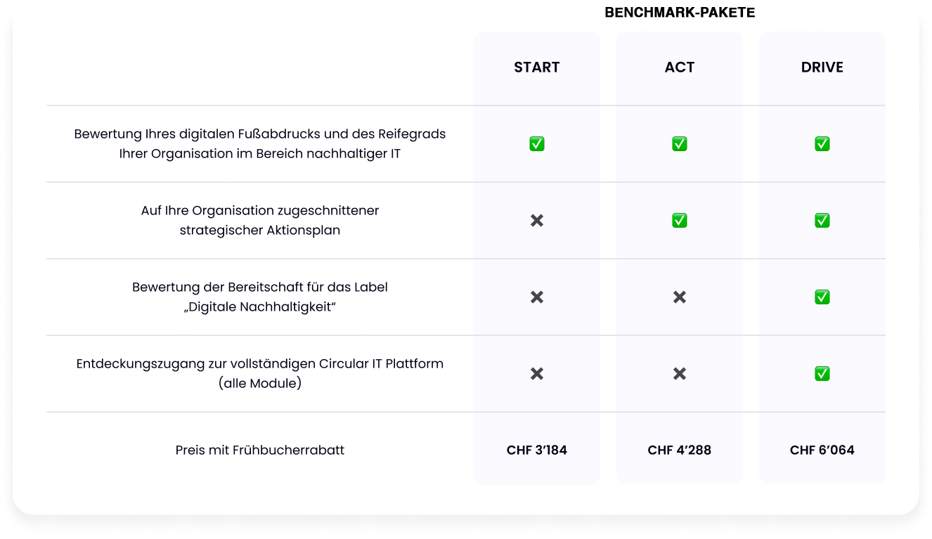 Aufbauend auf dem Erfolg des Swiss Sustainable IT-Benchmarks 2025, an dem eine Vielzahl von Organisationen teilgenommen hat und der umsetzbare Erkenntnisse geliefert hat, freuen wir uns, die Ausgabe 2026 des Benchmarks zu starten. Dieser neue Benchmark soll die Messlatte noch höher legen, indem er mehr Teilnehmer anzieht, den Umfang der Analyse erweitert und die Empfehlungen zur Unterstützung wirkungsvoller Veränderungen verstärkt.